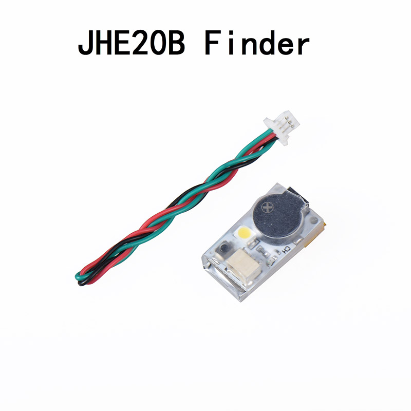 The JHE20B Finder is compatible with all BF and CF flight controls. Just connect to the buzzer interface of the flight controller and it will work. When the flight control wiring is correct, the multi-rotor aircraft is powered on, and the flight control power supply will automatically charge the JHE20B Finder (the red LED will light to indicate that charging is in progress, Red LED off means charging is saturated; red light flashing means flight controller is powered off, wait 30 seconds waiting time).