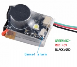 The JHE42B Finder is compatible with all BF and CF and INAV flight controls. Just connect to the buzzer interface of the flight controller and it will work. When the flight control wiring is correct, the multi-rotor aircraft is powered on, and the flight control power supply will automatically charge the JHE42B Finder (the red LED will light to indicate that charging is in progress, Red LED off means charging is saturated; red light flashing means flight controller is powered off, wait 30 seconds waiting time).